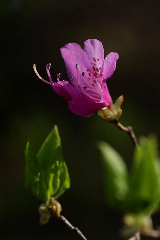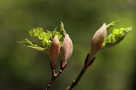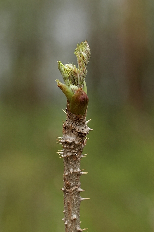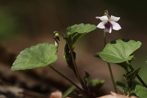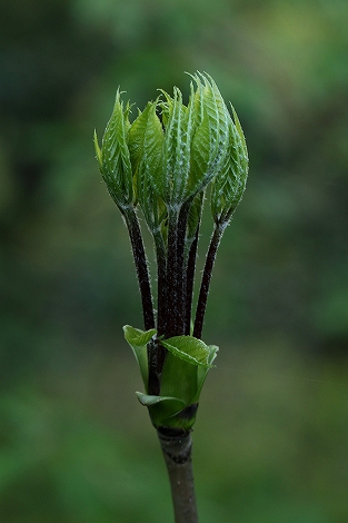 201504/14 三瓶北の原 花便り10 植物 0 4月14日(火)今日もまた肌寒い一日でした。 雨の降らない朝のうちに、ちょこっと撮影しました。オオタチツボスミレ(大立坪菫)スミレ科タチツボスミレより、少し赤味がかった薄紫色の花びらです。 花の後ろに突き出た距が白色というのが、タチツボスミレとの大きな相違点。タラノキ(楤木、桵木)ウコギ科花ではありませんが、「花よりダンゴ」と云ふことで「タラの芽」です。 この芽は無事に成長することが出来るでせうか?