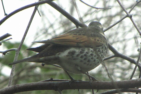 201503/05 鶫 動物 0 3月5日(木)毎年、晩秋になるとやってくる「ツグミ(鶫)」。家の庭は狭いのだが、落ち葉は豊富にある。これは決して庭掃除を怠けているわけであるが、ツグミにとっては好都合。 落ち葉を嘴でつまんでめくりあげ、下に潜む虫等を採食している。今日は出先から車で帰ってきたら、駐車スペースからツグミさっと近くの木の枝に飛び上がった。およそ5メートル先だ。こちらの様子を伺っている。 こちらもしばらく車の中から様子を見てみよう。地面におりて、エサを探し始めた。 盛んに地面をつついている。 なにが獲れるのかな?時々、顔をあげてこちらへの注意も怠りません。 15分位見ていたが、こちらもいつまでも見ているわけにはいかないので、ここまでです。 おわり