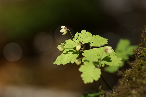 201304/23 情報を得るために奥出雲へ 植物 0 4月23日(火)けふは、あまり天気がよくありませんでしたが、情報を得ようと「船通山」の麓にむかいました。亀石コースの駐車場に車を置き、ほたほたと歩き出すと、道端に「ボタンネコノメソウ」「ミヤマカタバミ」「ヤマエンゴサク」「サンインシロカネソウ」「キクザキイチゲ」などの花を見ることが出来ました。 コチャルメルソウ(小哨吶草)ユキノシタ科スミレサイシン(菫細辛)スミレ科サンインシロカネソウ(山陰白銀草)キンポウゲ科沢沿いの道でいつも出逢える方々との再会を楽しんで、引き返しました。 山頂には向かわなかったので、「ヴィラ船通」へ情報を聞きに行きます。 何の情報かといえば、この時期の船通山なら、「カタクリ」さんですよ~。 先日の雪で山頂には5センチ程度の積雪があるとか、でも、昨日は日が射したそうで雪をバックに開いたカタクリの花が見れたそうです。 さ~て、いつ「カタクリ」さんに逢いに行こうかな。