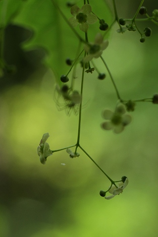 201305/15 カタクリに逢いに 植物 0 5月14日(火)今年は、自分の都合と天気がなかなか噛みあわず、「カタクリ」さんに逢いに行くのが、例年よりずいぶん遅くなってしまいました。 それでも船通山山頂付近では、花弁をくるりと反り返らせた愛らしい姿の「カタクリ」さんたちに出逢うことが出来ました。 途中の山道沿いでも、お馴染みの方々との再会を楽しんで、まさに至福の一日でした。クルマバソウ(車葉草)アカネ科ツクバネソウ(衝羽根草)ユリ科上の画像は登るときに写したもので、花が開こうとしていました。下の画像は降りるときに写したもので、完全に開いていました。(うそをつくな~ はい、すみません まったく別の株です。)サンインシロカネソウ(山陰白銀草)キンポウゲ科まだまだ、たくさん花を見ることができます。 湿り気の多い所や、沢沿いがお好みなので、日差しの角度によってはキラキラが写りこみます。シロバナニシキゴロモ(白花錦衣)シソ科トキワイカリソウ(常盤碇草)メギ科ウスギヨウラク(薄黄瓔珞)ツツジ科ハウチワカエデ(羽団扇楓)カエデ科ブナ(橅)ブナ科上の画像が雌花で、下の画像が雄花です。 久しぶりに出逢えました。ヒメクロサナエ(姫黒早苗)サナエトンボ科この方と出逢うのは、此処では初めてです。 以前、「女亀山」で出逢ったことはあります。カタクリ(片栗)ユリ科上の画像のように子房が膨らんで、種子を育てている状態の株が大半でしたが、燃え盛るかがり火のように見える花を見ることもできました。