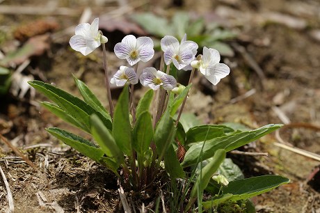 201304/17 大江高山の菫さん 他 観察スポット 0 4月16日(火)けふは、暑かったですね~。 そんな日に大江高山に登らなくてもいいのに、この時期を逃すとまた一年先まで出逢えない、「菫」さんたちに逢いに行ってきました。 もちろん、その他にもお目当ての方々にも、出逢えましたよ。 アカネスミレ(茜菫)スミレ科本当に久しぶりにこの「アカネスミレ」さんと出逢えました。 昨年は時期を逸し、出逢えなかったのです。 今回もピークは少し過ぎていたような感じです。アケボノスミレ(曙菫)スミレ科今年は、この「アケボノスミレ」さんの株、たくさん見ることが出来ました。 何回もこの時期に登っているという山仲間の人も、「これだけの株数を見たのは初めてだ」と、言っておられました。オオタチツボスミレ(大立坪菫)スミレ科山野を歩けば普通に出逢えるこの方々も、花の名山の大事な一員です。 ヒゴスミレ(肥後菫)スミレ科白色に少し薄紅色がかかったような花色ですが、画像では表現できなかったですね。 ぜひ、実物に逢いに行ってくださいませ。シハイスミレ(紫背菫)スミレ科山と渓谷社の図鑑では、「西日本を代表する美しい菫」と紹介されています。 まったくその通りだと思っています。(意見には個人差があります)スミレサイシン(菫細辛)スミレ科この方々もピークは過ぎていましたが、標高の高い所で最新の「スミレサイシン」さんを探してモデルさんになって頂きました。他にも、「タチツボスミレ」さん、「ナガバノタチツボスミレ」さんと出逢えました。ミスミソウ(三角草)キンポウゲ科この方々に出逢うのも、この山ならではの楽しみの一つです。 ただ、登山道沿いでは、近年姿を減らしてきているように思います。 「大江高山」の春といえば、「ギフチョウ」さんとの出逢いも楽しみです。 たくさんの方々の一大舞踏会を堪能できたのですが、この日の気温の高さゆえか、動きが活発で撮影を断念せざるをえませんでした。 嬉しいやら悲しいやら。 PR