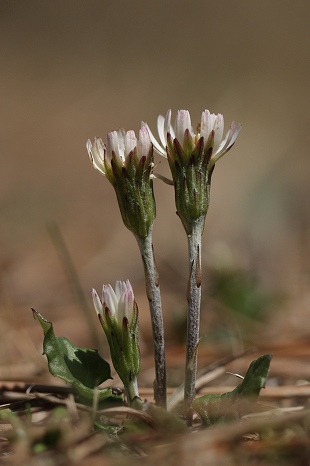 201304/13 センボンヤリ 植物 0 4月13日(土)何日か前から、北の原では「センボンヤリ」さんが咲きだしています。 この方は花茎を春と秋に伸ばします。 春は別名「ムラサキタンポポ」とも呼ばれる愛らしい花を咲かせるのですが、秋は地味な閉鎖花でこの姿から「センボンヤリ(千本槍)」と名づけられました。センボンヤリ(千本槍)キク科