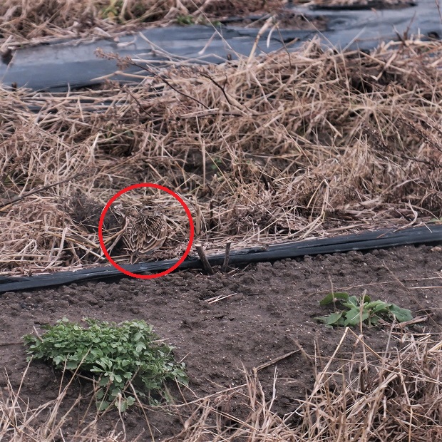 202012/27 見事なカモフラージュ 動物 0 令和2年12月24日(木)久しぶりに会社の圃場で、トラクターによる作業を行っていたら、3mほど先の地面の上を、何かがちょこまかと早歩きしているのがみえた。 「あ、小鳥さんだ」 上の画像中に小鳥さんがいますよ。さてどこでしょうか?もうちょっとズームイン わかりましたか?では、正解を では、どなたでしょうか? ヒバリ(雲雀)さんです。 見事な隠れ身の術 PR
