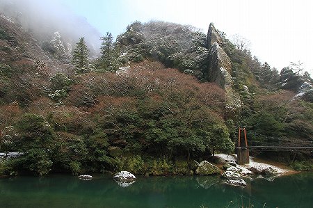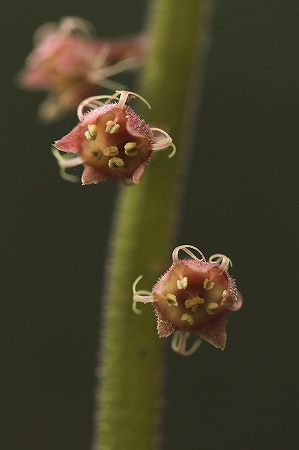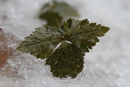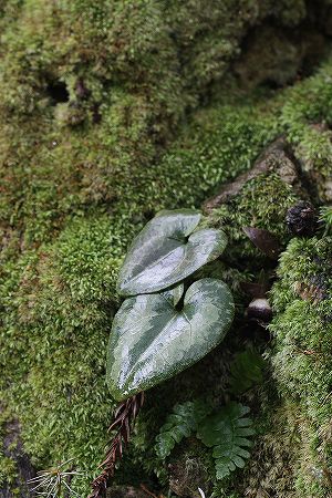 201102/17 春遠からじ 観察スポット 0 2月15日(火)お久しぶりです。ひと月も更新をサボってしまいました。(充電期間?ということで・・・汗)久方ぶりに立久恵峡に行って見ました。気になる植物の様子を伺いに。そうです。「ユキワリイチゲ」が気になって、いてもたってもいられず、しゃがみこんでみました。チャンチャン。え~、 うっすらと新雪がありまして、「ユキワリイチゲ」は、花茎を伸ばし蕾をつけるところまでは、至っていません。ユキワリイチゲ(雪割一華)キンポウゲ科まだまだ寒いので、例年よりも花が見られるのは遅いかもしれませんね。寒い中、この方は雄花を開いていましたよ。ヤマアイ(山藍)トウダイグサ科