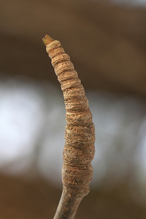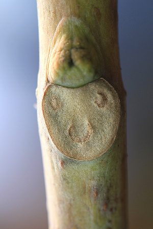 201102/27 冬芽 ・ 落葉痕クイズ 未選択 0 今月も残すところあと一日となりました。「一月は行く、2月は逃げる、3月は去る。」などと昔から言われるように、あっという間にこの時期は過ぎ去っていくのですね。思えば、今月の記事は今回で2回目・・・・・。かなり、さぼっています。というわけで、今年初めての冬芽・落葉痕クイズ~(ドンドン、ぱふぱふ)①俗称?「縄のれん」 垂れ下がるたくさんの花序の様子から、こう呼ぶ人もいます。②ウコギ科です。 若芽が山菜として利用できます。 島根スーパー観光大使「吉田君」が、活躍するアニメの「秘密結社」の名前は「鷹の爪団」ですが、「タカノツメ」ではありません。(ややこしい設問をするな)③ミズキ科です。 対生であること、若い茎に縦筋があることなどで識別できます。④バラ科です。 葉っぱの裏側に密生する、白毛が名前の由来になっています。⑤カバノキ科です。 別名が二つあって一つは「アズサ」もう一つは「ヨグソミネバリ」です。 サリチル酸メチルという成分を含んでいるので、枝を折ったり樹皮を剥いだりすると、独特のにほひがします。 ⑥ツツジ科です。 大田市のシンボル花ですね。⑦こーは、バラ科だとまっしゃい。 まっとヒントを出すと、木苺の仲間だとまっしゃい。 そーでもわからんっだったら、葉っぱがあーときに触ってみーだわな。なんてていい気持ちになーけん。⑧ミカン科です。 落葉痕が何かの顔のようですね。 若い幹や枝には鋭い棘がたくさんあって、近寄りがたいですね。