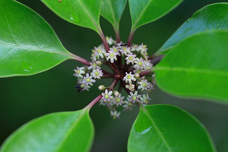 201006/22 シリーズ 庭の住人 1 観察スポット 0 6月21日(月)自分の一番身近にある観察フィールドは、やはり「庭」だ。 朝でも夕方でも、雨でも雪でも、思い立ったら直ぐに観察出来る。 が、やっかいなのは私の「性分」で、庭の草むしりなどをしていても、ちょっと見慣れぬ新芽とかロゼットを見つけたりすると「観察モード」に入ってしまい、図鑑やらカメラやら持ち出してしまい、結局、作業が予定どおりに終わらないことがままあるのだ。今日も庭の樹木の剪定をしていたのに・・・・・。クロガネモチ(黒鉄黐)モチノキ科「クロガネモチ」さんは剪定していません。 雌花がたくさん開いていたので見とれてしまいました。雌雄異株で雄株は近くに見当たらないのですが、毎年実をつけるのでご近所さんの庭にひょっとしたら雄株があるのかもしれません。ドクダミ(毒溜・毒痛)ドクダミ科この方々が一度蔓延ると、根絶するのは不可能に近いと思っています。でも、昔から民間薬では「十薬」として重宝されていますね。上手く利用しなきゃ。 ホタルブクロ(蛍袋)キキョウ科この方々も毎年増えています。ほったらかしなのですが、気に入ってくれたのかな?チチコグサ(父子草)キク科「ハハコグサ」さんより少し遅れて花を咲かせます。匍匐枝を出して増えるので、ほったらかしの庭にたくさんあります。(^^;オオチドメ(大血止)セリ科雨の雫をまとっていました。目立たないけど花序を葉っぱよりも高くかざして主張しています。コニシキソウ(小錦草)トウダイグサ科北アメリカ生まれのこの方も目立たない花をつけています。この画像では分かりにくいのですが、葉っぱの付け根の辺りにらしきものが写っています。オカトラノオ(丘虎の尾)サクラソウ科尾っぽのような花序に、何個の花が用意されているのでしょうか?花序の基部から開花が始まり、先っぽへと順次咲いていきます。ナンテン(南天)メギ科この方は庭ではなく、玄関の脇にいらっしゃいます。 皆様方の「難を転じますように。」