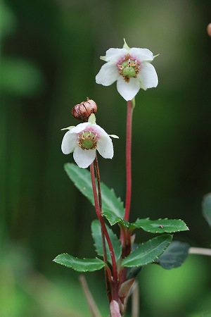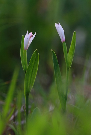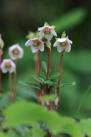 201006/23 三瓶山麓の花々 15 植物 0 6月23日(水)昨日の「白い菫」を撮影中、「ブト」の襲撃に遭い、左前腕は変形し(大袈裟)、左瞼も違和感がある。 日焼け止めは怠らなかったが、虫除けの事はすっかり忘れていた。 と云う事で、痒みに耐えながら花に逢いに行きました。ウメガサソウ(梅笠草)イチヤクソウ科もうかなり前から蕾は準備されていて、いつ咲くかと気を揉んでいたのですが、ちょっと訪れなかった間に開花していました。 此処では高さ7~15cmぐらいの株がみうけられます。 常緑の多年草として、図鑑には記載されていますが、ウェブサイトでは常緑小低木とされているのをよくみかけます。確かに茎の下部は木質化しているのですが、どちらでしょう? まあ「ウメガサソウ」さんにしてみれば、どちらでもいいことなんですけどね。終業後に、西ノ原へと向かいました。 この時期どうしても逢いたい方がいらっしゃるので。クララ(眩草)マメ科「クララ」と聞けば、「アルプスの少女」を思い浮かべる人も多いはず? それはさておき、この方は有毒植物で牛が食べないんです。 だからかどうかは知りませぬが、此処にはぽつぽつ目立ちます。ネジバナ(捩花)ラン科市街地の公園の芝生の中にいらっしゃるのをたまに見かけます。 一個一個の花を拡大すると、確かにラン科の花の構造をしているのが解ります。たまに、ねじれるのが嫌いな方も見かけます。オカトラノオ(丘虎の尾)サクラソウ科これから、たくさんの白い尾っぽが風に揺れている様が見られることでしょう。スズサイコ(鈴柴胡)ガガイモ科この方は、夕方から開花しだして、朝日が当たりだすと閉じてくるのだそうです。 誰か観察してくれませんか?ヤマトキソウ(山朱鷺草)ラン科はいっ、この方に逢いたかったのです。今年は野焼きが中止になったからでしょうか? 昨年と比べると周りの草丈が高いのです。 それでも、元気に咲いていらっしゃいました。 感激の再会です。