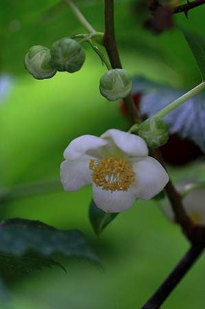 201007/04 雨上がりの道草 未選択 0 7月4日(日)今日もサヒメル周辺はガスの中でした。 帰り道によく道草をするところまで来るとガスは消えて、つかの間、雲間に青空も見えました。 雨は上がっていたので、忘れかけそうになっていた「マタタビ」さんの雌花を写そうと、葉っぱの下を覗き込みましたが、雨で撮影が出来ぬ間に花は終わり、果実になりかけていました。 また、来年の宿題となりそうです。さて、「マタタビ」さんの雌花は写せなかったのですが、直ぐ脇の草むらに雨が素敵なお土産を残してくれていました。雨滴の戯れを堪能して、帰りました。 PR