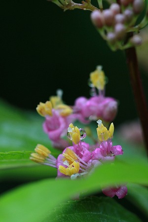 201006/30 三瓶山麓の花々 16 植物 0 6月30日(水)サッカー日本代表が、惜敗した・・・・・。 少し胸に風穴が開いた様。 こんな時は、そうです。植物に癒されよう。ムラサキシキブ(紫式部)クマツヅラ科雨上がりなので、雫が光っていました。もちろん「ムラサキシキブ」さんも輝いていますよ。クマノミズキ(熊野水木)ミズキ科三重県の熊野地方に産するミズキと云う、由来です。 「ミズキ」さんの花が終わって少したってから、この方々は花を咲かせ始めます。 「ミズキ」さんの葉が互生であるのに対し、「クマノミズキ」さんは対生であります。イタドリ(虎杖)タデ科もうはい、花を咲かせちょらいますずね。 このさんは雄んたと雌んたが違うすこですげなわ。 だけん、この画像は雄んたの花ですわ。イチヤクソウ(一薬草)イチヤクソウ科三瓶の周回道路脇で、ひっそり咲いていらっしゃいました。 昔から、薬草として優れていることが知られていて、この名前になったと云われています。