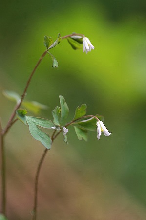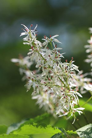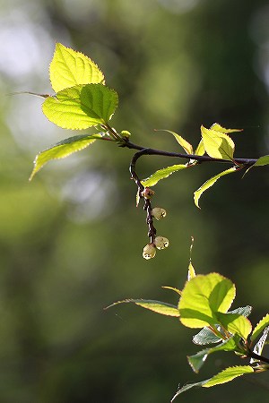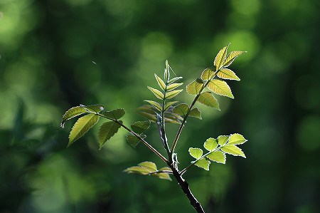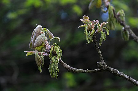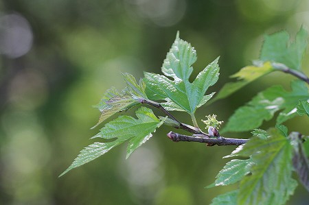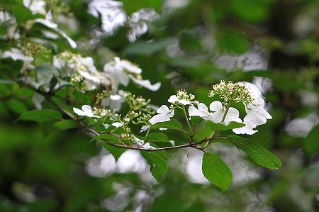 201005/31 広島県民の森で 植物 0 5月30日(日)観察会の後、午後から「広島県民の森」へ向かう。参加者は3人。いずれも、「好山病(こうざんびょう)」仲間だ。 管理センターから出雲峠までを植物を観察しながら往復した。 ハクウンボク(白雲木)エゴノキ科この方の葉っぱは柔らかく肌触りが良い、しかも大きいので、雉撃ちの後始末に使えるようです。(笑)ヤマボウシ(山法師)ミズキ科山陰の方では「おつき」と呼ぶ。由来が知りたい。ニョイスミレ(如意菫)スミレ科なんか、お互い意地を張って、そっぽを向いているように見えました。ツリバナ(吊花)ニシキギ科実の時期はすごく目立つのに、花の時期はあまり目立ちません。 でも、かわいいっしょ。コマユミ(小真弓)ニシキギ科やはり、花の時期は目立たない「コマユミ」さんです。ヌルデ(白膠木)ウルシ科木漏れ日に透けた葉っぱが、綺麗でしたので思わずレンズを向け、シャッターを切りました。クロタキカズラ(黒滝葛)クロタキカズラ科日本には、「クロタキカズラ科」の植物が、2種しかないそうです。もう1種は「クサミズキ」といって、石垣島、西表島に自生しているそうです。オトコヨウゾメ(男莢迷)スイカズラ科植物の名に「男」とつく場合、たいがい役に立たない意味合いが込められていて、「オトコヨウゾメ」さんも赤い実がなるのですが、「ガマズミ」さんの実のように、染料に使えるわけでもないし、食しても不味いそうです。 誰かが「男用済み」といってました。(哀) But しかし、花も実も美しいではないかミズナラ(水楢)ブナ科雄花序をぶらさげている「ミズナラ」さん。雌花序も写したかったのですが、脚立がなかったので・・・。広島県民の森を後にし、国道314号を三井野原に向かっていると、道脇に、ミツバウツギ(三葉空木)ミツバウツギ科「ミツバウツギ」さんがこんにちは。この方はユニークな形の「袋果」をつけるので、是非観てあげてください。もちろん、島根県内にも自生していますよ~。