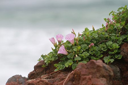 201005/26 海端の植物 植物 0 5月25日(火)雨が降ったり止んだりの繰り返しのなか、静間町の海辺を散策? わざわざ悪天候に花を撮影しに行かなくても・・・と、思われるかも知れませぬが、花は待ってくれません。休日の空いた時間があれば、花に出逢いたい「あきあかね」です。静間町の海辺の花といえば、「ハマナス」さんです。が、一輪見かけただけです。しかも、今日は「ハマナス」さんが目当てではないのです。道脇の駐車スペースから、砂浜に降りていく途中にも色々な花々が咲いております。ヒメウズ(姫烏頭)キンポウゲ科早春の花というイメージ(思い込み?)があるので、まだ花が見れたことに感動です。ノヂシャ(野萵苣)オミナエシ科この方はヨーロッパ生まれの帰化植物で、欧米ではハーブとして栽培され、サラダに用いられるそうです。今度若菜を食してみませう。ケキツネノボタン(毛狐の牡丹)キンポウゲ科えっ、「キツネノボタン」と何処が違うの? 「ケキツネノボタン」は痩果(そうか)(金平糖のような形の果実)の先っぽがあまり曲がらない。「キツネノボタン」は、痩果(そうか)の先っぽがくるっと曲がる。 そうかノアザミ(野薊)キク科秋に咲く「薊」の仲間って見分けが難しいのですが、この時期咲くのはこの方だけなのです。たまに白花品も見かけます。オオジシバリ(大地縛り)キク科地面を縛り付けているとは、見事なネーミングです。ハマエンドウ(浜豌豆)マメ科綺麗で可愛い花を見ていると、とてもそういう気にはならないのですが、食用になるんです。ハマハタザオ(浜旗竿)アブラナ科この砂浜ではたくさん見ることが出来ます。ハマヒルガオ(浜昼顔)ヒルガオ科バックで白波が立っているのがわかりますか? 風もきつくてシャッタースピードをいつもより速く設定です。「ハマヒルガオ」さんも花がちぎれないかというほど煽られていました。ハマウツボ(浜靫)ハマウツボ科お待たせしました。この方が今日の目的の花だったのです。葉緑素を持たない寄生植物で「カワラヨモギ」さんから栄養をもらって生きているのです。さて、海岸から上がって車道を徘徊していると、「クサイチゴ」さんに似たような花が咲いていました。さて、どなたでせう。カジイチゴ(梶苺)バラ科やはり、キイチゴの仲間で「カジイチゴ」さんです。 この方の果実もやはり美味しいです。しかも厄介な棘がありません。此処の車道沿いに群生していらっしゃいます。でも、たくさん収穫してはいけませんよ。小鳥さんが、あてにしているはずですから。