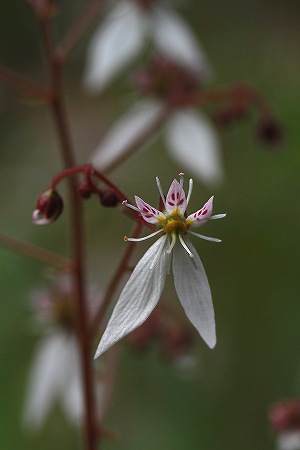 201005/31 五感を使って自然観察 イベント報告 0 5月30日(日)日本自然保護協会が企画した「全国一斉自然かんさつ会」に、エントリーした「五感を使って自然観察」を東出雲町の上意東地区に於いて実施しました。参加者は子どもを含む6名で、「京羅木山・星上山ハイキングコース」の一部を歩きました。およそ2時間の道草感覚の観察会でしたが、参加者の方からの自然体験の話も聞く事ができ、楽しいひとときが過ごせました。ユキノシタ(雪の下)ユキノシタ科山菜・民間薬として馴染み深い「ユキノシタ」さん。 参加者の一人は、この方の葉っぱを生で食したことがあるとか。天ぷらでしか食べたことがない私には味が想像できませぬ。ハンショウヅル(半鐘蔓)キンポウゲ科今年、初見の「ハンショウヅル」さんの花。 この方も、「クレマティス」です。