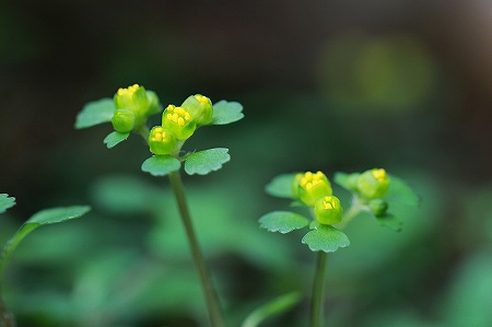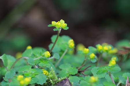 201003/16 出雲市の猫の目草達 植物 0 3月16日(火)なかなか、好天気とのタイミングが合わず、花々に逢いに出掛けられません。今日も午前中は曇り、肌寒く出掛けるのをためらいましたが、花は待っていてくれません。「え~い、ままよ。」と、出雲市南部へ向かいました。そろそろ、猫の目ちゃん達が咲き出している頃。ヤマネコノメソウ(山猫の目草)ユキノシタ科この方は、猫の目ちゃんのなかで、もっとも早くから咲き出しているんじゃないでせうか。ネコノメソウ(猫の目草)ユキノシタ科ご存知、ただの「ネコノメソウ」略して「ただネコノメ」な~んて呼んじゃ駄目ですよ。群生する様は圧巻ですから。(意見には個人差があります。)ホクリクネコノメソウ(北陸猫の目草)ユキノシタ科昨年、初めて出雲市にもこの方がいらっしゃることに気づきまして、大感激した次第です。上のモデルの方に出逢った場所は、昨年見つけた場所ではありません。(また一つ自生地が見つかった~!!)シロバナネコノメソウ(白花猫の目草)ユキノシタ科白い萼裂片と深紅の葯のコントラストが素晴らしい、この方も今が見頃です。コガネネコノメソウ(黄金猫の目草)ユキノシタ科この方も、昨年、出雲市にもいらっしゃることが初めてわかりました。今年も新たな自生地を見つけ、喜びもひとしおです。