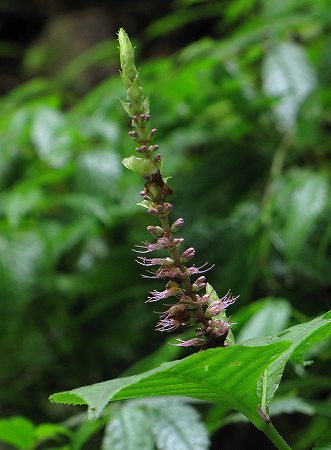 200909/09 中国五県交流会 イベント報告 0 先月(8月)の29~30日に、山口県錦町に於いて、NACS-J自然観察指導員中国地区交流会が開催されました。島根県からは14名の参加でおおいに会を盛り上げました。8月29日(土)受付および開会式は、道の駅「ピュアラインにしき」にて行われ、山口県の黒田会長の挨拶の後、『山口県のコウモリ』と題した山岡郁雄先生の講演がありました。講演のあと、少し車で移動し、コウモリの観察です。以前、錦町から島根県の日原町に向かって鉄道を通す計画があったそうで、その名残のトンネルが何箇所か残っています。そのトンネルをコウモリがねぐらとして利用しています。観察を終えると本日のお宿「深谷峡温泉 清流の里」へ。宿の傍らには深谷川の流れがあり、心地よい水音に包まれています。温泉で汗を流し、夕食の前にもう一つ『西中国山地のヤマネとモモンガ』と題された、田中浩先生の講演を拝聴します。講演が終わるといよいよ夕食&宴に突入~宴は25時ぐらいまで続いたとか8月30日(日)さて、本日は寂地峡へ移動し植物観察と動物観察の二班に分かれて観察会です。私はやはり植物観察のほうへ。(動物観察の記事は、機関紙「おとしぶみ 76号」をご覧ください)ミヤマママコナ(深山飯子菜)ゴマノハグサ科ハクウンボク(白雲木)エゴノキ科ヤマシグレスイカズラ科オオマルバノテンニンソウ(大丸葉の天人草)シソ科観察会を終え、閉会式のあと記念写真を撮影、来年の再会を誓って山口県を後にしました。