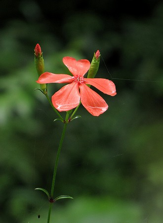 200909/14 7~8月の画像 2 未選択 0 オトギリソウ(弟切草)オトギリソウ科オトギリソウには、成分としてタンニンが多く含まれていますが、特有なものとして黒紫色素のヒペリシンが知られています。ヒペリシンは紫外線を強く吸収して、生体内における光化学反応を異常に促進するものです。オトギリソウを食べた牛や馬が太陽光線に当たると、強い皮膚炎を起こし、脱毛しますが、これがヒペリシンの作用と考えられます。また、マウスにオトギリソウを与える実験では暗所では正常なマウスが日光に当たると急に痙攣(けいれん)を起こして死んでしまいます。これもヒペリシンの作用と考えられます。(http://www.e-yakusou.com/yakusou/090.htmより、転載)そうなんですか~クサアジサイ(草紫陽花)ユキノシタ科装飾化は3枚の萼片から成っていて、繊細な造りの両性化と絶妙なマッチングです。イヌトウバナ(犬塔花)シソ科可愛らしい小花を沢山つけていました。花色の為か、清楚に感じられました。フシグロセンノウ(節黒仙翁)ナデシコ科いつもながら、はっとするほど鮮やかなオレンジ色。雨に濡れて艶やかに。ツリフネソウ(釣船草) ツリフネソウ科この花を観察していると、必ずハナバチの仲間が花に潜り込む姿を観る事が出来ます。ユーモラスな動作が見られます。 PR