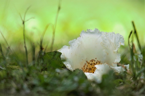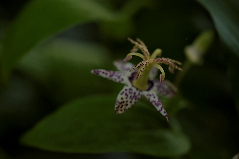 201907/17 三瓶山麓の花々 令和元年 5 植物 0 ヤマジノホトトギス(山路の杜鵑草)このユニークな花姿この花は両性花同花受粉を避けるため雄蕊が先に熟します。雌蕊は先が二股で雄蕊は先が円盤状この画像いずれも雄蕊が下にあるポリネーター(送粉者)に花粉を付けるため