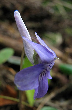 200903/03 玉湯町で 植物 0 3月2日(月)花情報が飛び交う今日この頃、「ナガハシスミレ」さんが咲いていたと云う記事をいつも伺うHPで見つけ、いてもたってもいられず、玉湯町大谷地区へ出掛けました。(病気)林道「大谷東線」の入り口に車を停めて、道の脇を何気に見たら「ナガハシスミレ」さん。ナガハシスミレ(長嘴菫)スミレ科タチツボスミレの仲間ですが、上の画像のように距が長~いのです。(別名、天狗菫)なんでこんなに長いのか?距と呼ばれる部位を持つ花はそこに蜜を溜めています。(ツリフネソウ、トキワイカリソウ等)蜜は植物が鳥や虫に送粉してもらうために用意したもの。その蜜を舐めようと色々な虫がやってきます。中には蜜だけ舐めて送粉しない虫もいます。そこで植物は花の形、色、咲き方を変えて来て欲しい(送粉してくれる)虫を選択してきました。で、「ナガハシスミレ」です。「花と昆虫がつくる自然」(田中 肇 著)という本に「ナガハシスミレ」の送粉者は「ビロードツリアブ」と記載されていました。この「ビロードツリアブ」と云う虫は春の早いうちから活動していて、何回か山野で見かけたことがありますが、確かに口吻がストローのように長いです。虫と虫媒花の関係、調べると面白いですね。