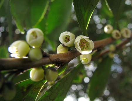200903/07 春のにほひ 植物 0 ヒサカキ(非榊、姫榊)ツバキ科今日は、「地形図を読む」研修会。早めにサンレイクに着いたので、建物の周りの林を散策したら、独特のにほひが・・・。やはり咲いていました。ヒサカキの 春を告げる にほひかな