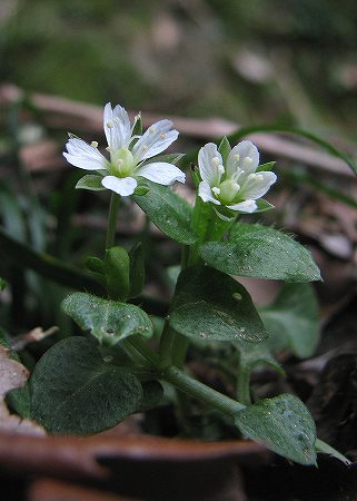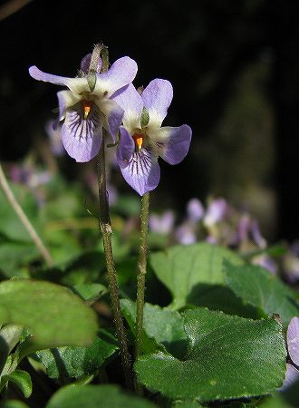 200903/10 立久恵峡にて 観察スポット 0 私の一番の観察フィールド、「立久恵峡」。此処で目に付いたもの(ほとんど草花ですが 汗;)のうち、撮影したもののみ、紹介します。スギナ(杉菜)トクサ植物門トクサ科ご存知、スギナの胞子茎「ツクシ」ちゃんです。これを見ると、やはり食欲の春?アオイスミレ(葵菫)スミレ科菫ちゃんの中でも割りに早い時期から花を咲かせる「アオイスミレ」ちゃん。寒さ対策なのかな?毛深いんですよ。それと、柱頭の先がかぎ状に曲がるのも見分けのポイントです。タチツボスミレ(立坪菫)スミレ科2月16日に撮影したのと同じ株です。花がいっきに増えました。ナガバタチツボスミレ(長葉立坪菫)スミレ科笹の陰で、恥ずかしそうに隠れていたのは「ナガバタチツボスミレ」ちゃん。コハコベ(小繁縷)ナデシコ科「コハコベ」さんはよく目にするけど、「ミドリハコベ」さんは何処?サワハコベ(沢繁縷)ナデシコ科少し湿ったところが大好きな「サワハコベ」さん。毎年、同じ場所でこんにちは。スズシロソウ(蘿蔔草)アブラナ科立久恵峡では、霊光寺周辺で沢山見ることが出来ます。続きは明日。