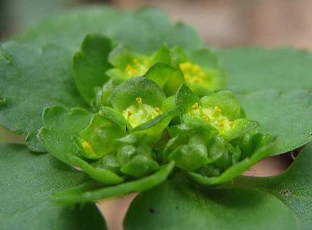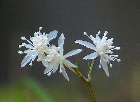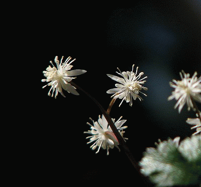 セリバオウレンは雌雄異株で上の画像はすべて、雄花をつけています。雌花は見つけられませんでしたが、両性花はありました。画像の右上の花は、雄蕊の中に緑色の雌蕊が見えています。