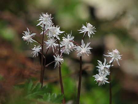 雪解け後の斜面に沢山可愛い花を咲かせています。セリバオウレン(芹葉黄蓮)