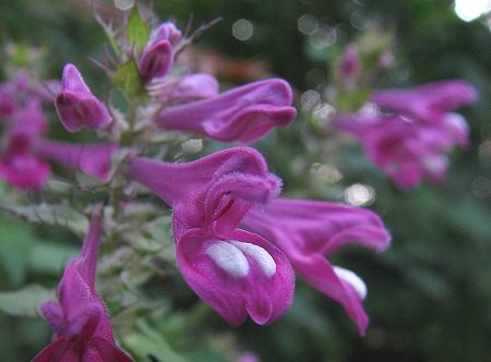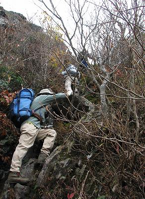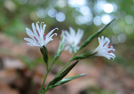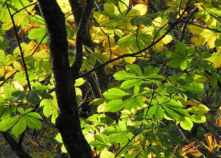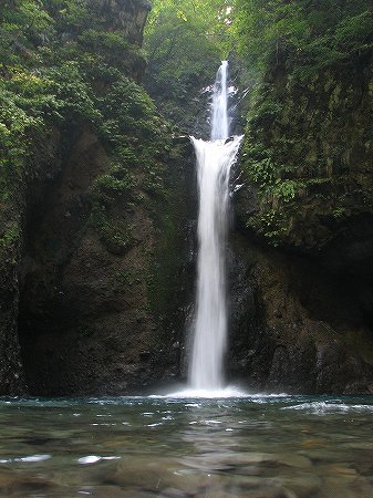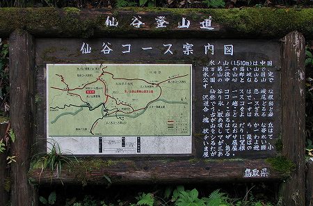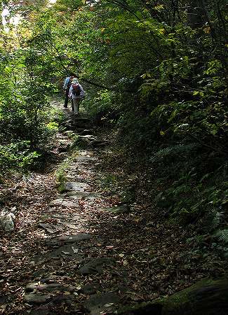 川床から歩き出して程無く足元に、キッコウハグマが咲いておりました。上の画像をよく見てください。開いた花と、すらりとした蕾状の物がありますが、この開いていないのは、閉鎖花と呼ばれるもので花を開かずに自家受粉をする仕組みなのです。開放花で虫による受粉が出来なかったときの為に備えているんですね。上の画像では分かりにくいのですが、石畳の道が断続的に現れます。この道は、1600年頃(慶長年間)に造られたと説明がありました。大山寺に、倉吉・関金方面から牛馬を引いて通った道だとか。大休峠でトイレ休憩し、大休口で昼食。鳥取県スタッフの方が用意して下さった茸汁に舌鼓を打ち、疲れも吹き飛びます。終点の一向平(いっこうがなる)野営場を目指して歩を進めていくと段々と水音が大きくなってきました。そうです。「大山滝」までやって来たのです。滝見台までおり、滝を眺めていると、滝壺まで見に行く時間がとってあるじゃあーりませんか。木段と鎖を伝って降りるとすごい迫力
