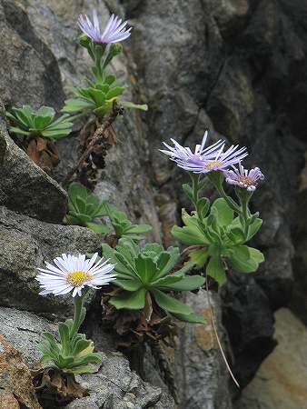 滝壺の近くの岩壁には、ダイモンジソウが、ゆらりゆらり。