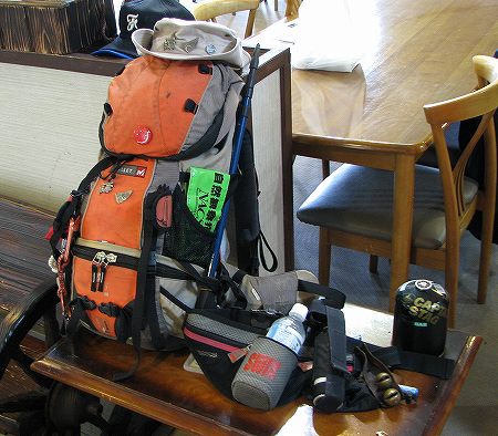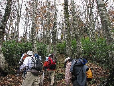 昨夜の宴は、何時終わったのでしょう? 今日は、約9キロのトレッキングがあるのですが、朝食を食べに食堂へ入ってくる指導員さんの顔には昨夜の疲れは見えません(さすがですね)。 朝食には、カニの味噌汁が用意されていて、しかも、おかわりが出来ました。朝食を終えるといつもよりお腹がでたような・・・。さて、いよいよトレッキングの出発地点「川床」へ移動です。普段、川床へ向かう道は工事の為、大きく迂回して向かいます。それ故、大山の大きさを実感させられます。キッコウハグマ(亀甲羽熊)