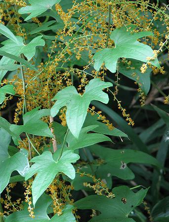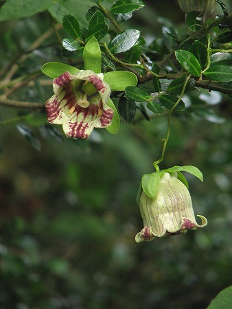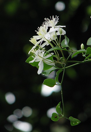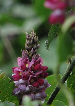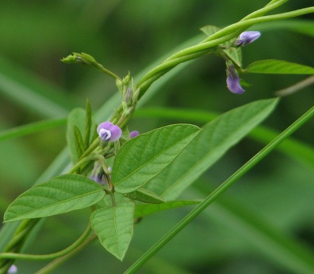 200809/08 蔓植物 植物 0 センニンソウ(仙人草)キンポウゲ科以前に紹介した「ボタンヅル」に似た花をつけます。葉っぱは切れ込まないので、その点で見分けられます。ツルマメ(蔓豆)マメ科大豆は、この「ツルマメ」から改良されて出来たそうです。実が熟したら食べてみよう。クズ(葛)マメ科島根県自然観察指導員連絡協議会の機関紙「おとしぶみ 45号」にクズについて書かれた記事が載っていますが、旺盛な生命力で繁茂し各地で有害植物として、扱われています。秋の七草に詠まれたときは、牧畜の飼料や蔓を使った民具、葛粉の採取など多種に利用され、繁茂することは無かったのでしょう。「花が綺麗なことが唯一の美点」、などと云ったらあまりにも身勝手で酷い、言い方ですね。ツルニンジン(蔓人参)キキョウ科別名、「ジイソブ(爺蕎)」です。ソブとは木曾地方の方言で「そばかす」の事。「お爺さんのそばかす」という事ですね。花にある斑点をそういう風に見立てたとか。対する「バアソブ(婆蕎)」という植物もありますが、観てみたいですね。