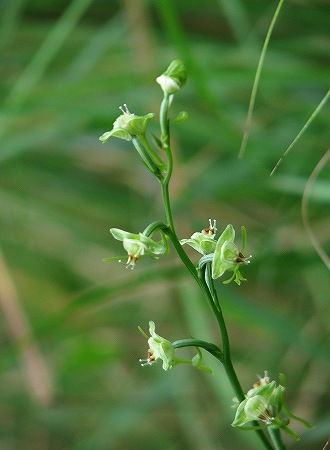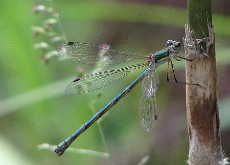 200809/13 斐川山中の湿地 未選択 0 斐川町の山中に湿地がある事をご存知だろうか?小さい湿地なので地図には載ってないと思う。小さいながらも此処には私の気になる植物が生きている。ラン科の植物である。その花に逢いに向かった。シラヤマギク(白山菊)キク科カエデドコロ(楓野老)ヤマノイモ科マルバハギ(丸葉萩)マメ科キキョウ(桔梗)キキョウ科湿地に辿り着くまでの道すがら、季節の花々を愛でて歩く事30分、目的の湿地に着いた。ミズトンボ(水蜻蛉)ラン科湿地に生きる植物「ミズトンボ」である。地味な花であるが、湿地に行けば何処にでも在るというものではない。上の画像は、花のアップである。蜻蛉の頭のごとく、丸いのが名の由来か。此処には他にも、「ヒメシロネ」や「シロイヌノヒゲ」といった、湿地性の植物を観る事ができる。話は変わって、道中、蜻蛉の仲間も沢山見たが驚いたのが、アオイトトンボの仲間である。アオイトトンボ(青糸蜻蛉)アオイトトンボ科上がオス、下がメスの画像である。道中にため池の脇を通る箇所があるのだが、そこに踏み入れたとたん、わらわらと出てくる事。狭い範囲で20匹以上見ました。とても綺麗なイトトンボです。