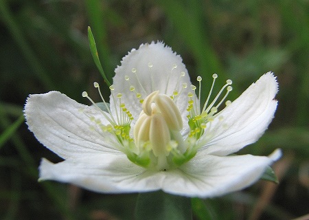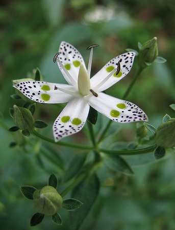 200809/16 秋の名花 植物 0 残暑の厳しさも和らいできた昨今、秋を感じさせる花に逢うため、中国山地へ向かいました。アケボノソウ(曙草)リンドウ科まずは、「アケボノソウ」さんの登場です。花びらの丸い斑点を夜明け前の空にみたてて、曙と名づけたとか。大きい黄緑色の斑点は太陽と月、小さな黒い斑点を星となぞらえたのでしょうか?ちなみに黄緑色の部分は蜜腺で、よく蟻がたかっています。ツルリンドウ(蔓竜胆)リンドウ科日当たりの良い草地に咲く、リンドウや、フデリンドウは、鮮やかな青い花が印象に残りますが、この「ツルリンドウ」さんは淡く優しい色合いで秋の訪れを告げています。晩秋には、はっと息を呑むような綺麗な実を結びます。クロバナヒキオコシ(黒花引起こし)シソ科小さくても濃い紫色の花は、鮮烈に私の脳裏に刻み込まれている。(な~に格好つけちょらっしゃーや)ウメバチソウ(梅鉢草)ユキノシタ科なんと繊細な花の作りでしょうか。ため息が出てしまいます。ハァ~マツムシソウ(松虫草)マツムシソウ科秋の草原を彩る「マツムシソウ」さん。少しでも風が吹くとゆらゆら揺れて撮りづらいんですが、今回はアシスタントの「ウラギンヒョウモン」さんが重しになって下さいました。