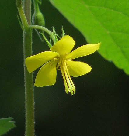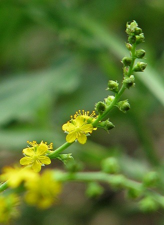 200809/20 無題 未選択 0 「暑さ寒さも彼岸まで」と云う言葉が、当を得ていたのはいつ頃までだったでしょうか。近年は残暑厳しく秋の彼岸が近くなっても日中の暑さは身に堪えます。でも、花々に逢いたくて徘徊する私です。カラスノゴマ〈烏の胡麻〉シナノキ科昨秋、果実をつけた「カラスノゴマ」さんに初めてお目にかかり、花を見たいと、同じ場所に出掛けました。綺麗な黄色の花に感激キンミズヒキ(金水引)バラ科すぐ近くに、「私も撮って」と「キンミズヒキ」さん。綺麗な黄色の花でした。整った星型の花は、径3mmほどです。アカネ(茜)アカネ科小さくて可愛い花を沢山つけているのは、「アカネ」さんです。根っこが赤いことからの命名ですが、引っこ抜いて確認はしてません。ゲンノショウコ(現の証拠)フウロソウ科紅白の花がまじって咲いていました。こんな可愛い植物が素晴らしい薬効成分を持っているんですねぇ。ヤマジノホトトギス(山路の杜鵑草)ユリ科この方も性転換する植物ですね。画像の花は雄蕊が雌蕊より、下方に降りています。つまり、雄蕊先熟で雄花の時期なんです。雄蕊が花粉を出し切ると、今度は雌蕊が降りてきて雌花の時期と変わります。同花受粉を防ぐてだてです。シロバナサクラタデ(白花桜蓼)タデ科この方は、雌雄異株です。ってことは画像は雄株ですな。ってことは雌株も撮影ですな。行って来ま~す。