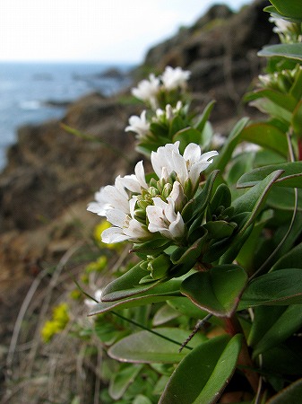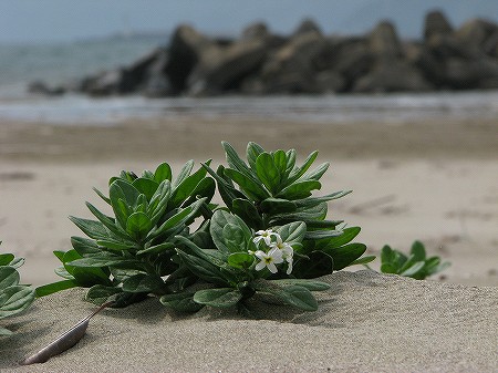 200806/07 海辺の花々 植物 0 先日に引き続き、海辺の花を見て廻った。やはり、お目当ての花には出逢えなかった。ハマボッス(浜払子)サクラソウ科まずは、岩場で見ることが多い「ハマボッス」さん。わざとに海が写るような場所で撮影しました。ハイ。タイトゴメ(大唐米)ベンケイソウ科「炊いた米」ではありません。「タイトゴメ」です。タイトゴメとは、高知県柏島の方言で、「南京米」の事。米粒のような葉っぱから、そう呼ばれるようになったそうです。テリハノイバラ(照葉野茨)バラ科やはり、厳しい環境下で生きているわけですから、葉っぱも革質で厚いですね。ツルナ(蔓菜)ツルナ科この方は多肉的、厚さです。ほうれん草に似た味で、おひたしなどに。ビタミン類も豊富だそうです。ハマニガナ(浜苦菜)キク科大時化のときは、波を被りそうな所です。凄いです。ハマボウフウ(浜防風)セリ科海端の人には山菜?海菜として?馴染み深い方です。スナビキソウ(砂引草)ムラサキ科先日、山陰中央新報に記事が出ていましたね。アサギマダラも飛び回っていました。オカトラノオ(丘虎尾)サクラソウ科この方は、海辺の植物ではありませんが、偶然近くで咲いていたものですから。