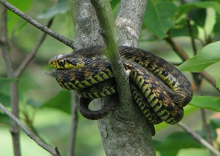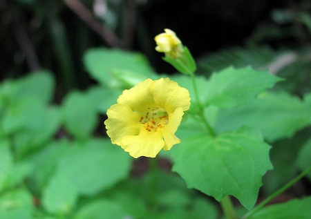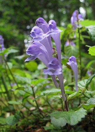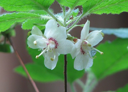 200806/08 玉峰山 山行 0 6月7日(土)私の出発点、亀嵩の「玉峰山」に1年ぶりに登ってきました。10年以上前、私が山歩きを始めてまだ間が無い頃、玉峰山で自然観察会が行われる事を新聞記事で知った山歩き仲間と、軽い気持ちで観察会に参加したのでした。玉峰山で自然観察会ならびに自然観察指導員なるものを知る事となり、その後、講習会を受講し指導員となり始動したのも此処「玉峰山」なのです。その当時、玉峰山自然観察会を盛り上げていた指導員さん同志で玉峰山の自然を味わってきました。当ブログをご覧の皆様にもおすそわけ致します。デワノタツナミソウ(出羽の立浪草)シソ科花冠の下唇の紫斑が不明瞭で、渓流沿いに見られるタツナミソウの仲間です。コアジサイ(小紫陽花)ユキノシタ科装飾花がない紫陽花です。薄暗い林縁で輝いています。バイカツツジ(梅花躑躅)ツツジ科初のご対面でした。興奮しますた。ミゾホオズキ(溝酸漿)ゴマノハグサ科山腹にある水場付近で、この時期いつもご対面。ヤマカガシ(山棟蛇)ナミヘビ科気持ち良さげに、日光浴。オオバスノキ(大葉酢の木)ツツジ科ツツジ科のこげな形の花、えとまっしゃい。ナツハゼ(夏櫨)ツツジ科出雲地方では「牛の額」と呼ばれています。クマヤナギ(熊柳)クロウメモドキ科実をつけています。花もみなくちゃ。ササユリ(笹百合)ユリ科本当に上品な佇まいです。今年初のご対面。サトキマダラヒカゲ(里黄斑日陰)ジャノメチョウ科Mさんの帽子にて憩いのひと時を過ごしています。下山する途中では、すぐ近くでサンコウチョウが囀りまくり、目の前を飛んでいくのを見る事が出来ました。