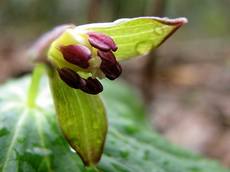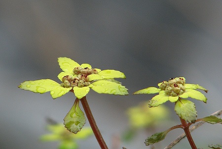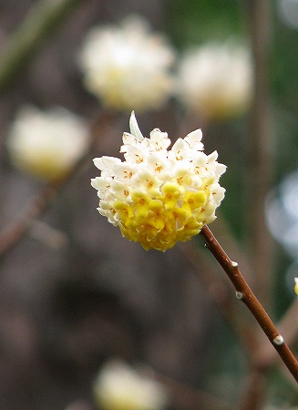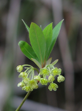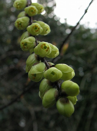 立ち寄ってはいませんが、山の中腹には水場があり、この分岐を左にいきます。何箇所かロープが、設けられています。そこは本当に滑りやすいので、雨天後には、行かない方がいいですよ。この案内板のところで、ミツマタが花を咲かせていました。しばし休憩。ミツマタ(三椏・三叉)
