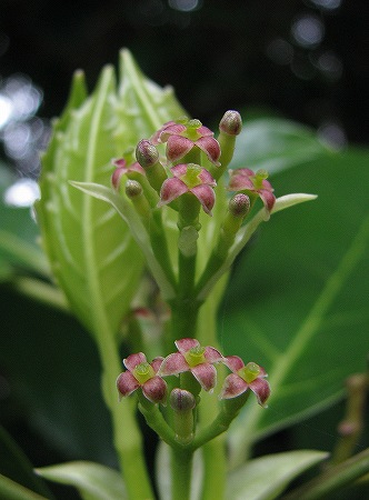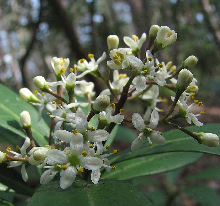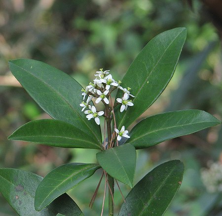 高の峯山に比べると少し急登です。一息つきたい所で若干傾斜が緩やかにになり、そこでツルシキミが「たばこすーだわ」と、声をかけてくれました。ツルシキミ(蔓樒)