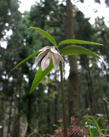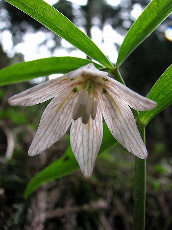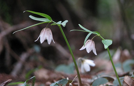 200803/27 春の妖精 植物 0 早春の林床を彩る草花たち、その中でも「イズモコバイモ」には惹きつけられる。自生地が島根県の限られた地域にしかないというのも、大きな理由だが、地味だけど気品のある花を下向きにつけた、その姿に惚れ込んで毎年、逢いにいくのだ。イズモコバイモ(出雲小貝母)ユリ科イズモコバイモという和名がつけられているが、残念ながら、出雲部の自生地は、盗掘の憂き目にあったりで、個体数の減少が見られる。石見部の自生地は保護管理されているおかげで、個体数が多い。川本町の自生地は「イズモコバイモ祭り」を開催し、観察会も行っているので有名だが、その他にも良い自生地があるのだ。今年は開花株が多い。ちょっと失礼して、下から覗かせてもらう。どんな虫が訪れるのだろうか。この林床には、ミヤマカタバミも沢山咲いている。この花も好きな花だ。イズモコバイモとミヤマカタバミのツーショット。なにやら1年ぶりの再会に積もる話がありそうな、二人です。