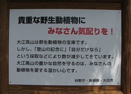 200804/07 春 大江高山 未選択 0 このほど、大田市祖式町にある「大江高山」に登ってきました。ルートは山田コース往復です。この日は、天気もよく最高の山歩き日和です。目的の花も、開花していることでしょう。登山道は、大江高山を愛する地元の人たちが整備してくださっています。久しぶりに来たら、このような物が設置されていました。まさにその通りですね。竹林とスギの植林地を抜けると少し急登になります。少し息が上がってきたところに、ダンコウバイ(壇香梅)クスノキ科ダンコウバイが花を付けておりました。先日、見たアブラチャンは花序に柄がありましたが、ダンコウバイには花序に柄がありませぬ。この山には、ミヤコアオイという名前の植物が割にあって、ミヤコアオイ(都葵)ウマノスズクサ科この植物を食草とする、ギフチョウをみられる確率の高い山ですが、まだ早かったのか出逢えませんでした。代わりに現れたのが、アカタテハ(赤立羽)タテハチョウ科ゆっくり時間をかけて登ったので、山頂には13時前に到着、少し霞んでいましたが風景を堪能して降りてきました。登山口にだいぶ近づいた所で、ヤマエンゴサクが輝いていました。ヤマエンゴサク(山延胡索)ケシ科そうそう、目的の花もたくさん咲いていました。ご覧ください。ミスミソウ(三角草)キンポウゲ科