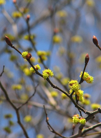 200803/29 ちゃん 植物 0 「ちゃん」といっても、「子連れ狼」で大五郎が父親を呼ぶときではない。漢字で瀝青(チャン)と書く。ピッチやコールタールのことである。なんの話かといえば、アブラチャンという木の名前が気になっていたので調べたら、種子や樹皮から油を採り灯火に使ったことに由来するそうだ。アブラチャン(油瀝青)クスノキ科同じクスノキ科のダンコウバイもこの時期、似たような花を咲かせるが、花序に柄があるほうがアブラチャンです。花も名前も、可愛らしい。