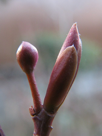200802/10 庭の住人5 植物 0 2月10日(日)昨日は朝から出掛けていたので、気になる芽を観ずにいた。芽だしに気づいてから今日で6日目です。高さ14~15mm位になりました。他にも冬芽が膨らんできた方々がいらっしゃいます。ヤマボウシ(山法師)ミズキ科クロモジ(黒文字)クスノキ科