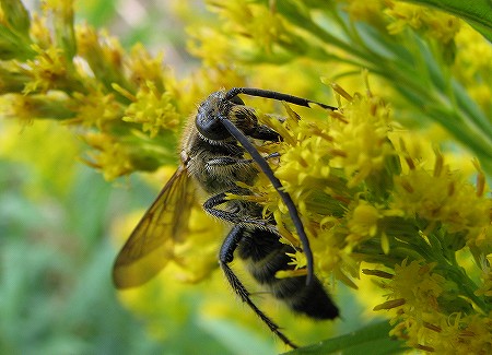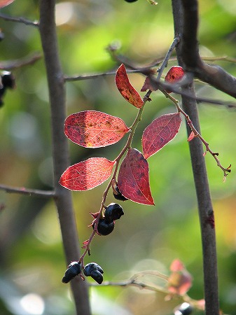 200712/01 行ってみよう 観察スポット 0 いま、出雲市の朝山森林公園では、遊歩道に気持ちよく歩けるように絨毯がしきつめられ、見上げれば、レース模様の見本市、木漏れ日に輝くナツハゼ(出雲地方名はウォスノフタイ(牛の額))セイタカアワダチソウの蜜を啜るハラナガツチバチが、観察できます。期間限定